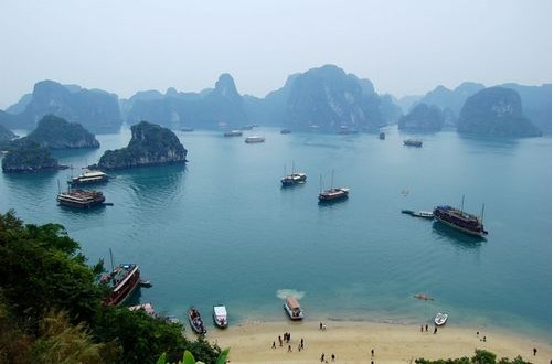 午餐后可自费前往越南最浪漫、最漂亮的岛屿——天堂岛(230元/人自费约3小时左右的游船时间,含上岛费),后下船,暂别上帝赐于越南最好的礼物——下龙湾,前往河内。