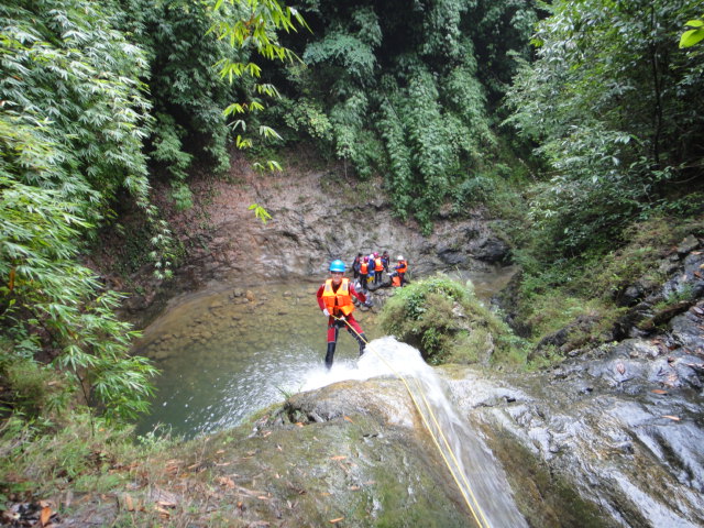 想的溪降穿越线路。它由4道溪降10来个跳潭和8个冲马桶小瀑组成的溪流,最高跳潭高度约4米,最高瀑降高度约35米,溪降综合难度初级,各种溪降技能基本都会使用到,实为溪