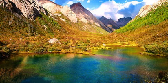 【目的地简介】:四姑娘山位于四川省阿坝州小金县与汶川县交界处,距成都市235千米,由四座边绵不断的山峰组成,它们从北到南,在3.5千米范围内一字排开,从幺姑娘、三姑娘、二姑娘到大姑娘,其高度分别为6250米,5664米、5454米,5035米,其中幺姑娘山峰是四川省阿坝州第一高峰。这四座山峰长年冰雪覆盖,如同姿容俏丽的四位少女亭亭玉立于长坪沟和海子沟两道银河上。四姑娘山中以幺妹身材最为苗条,姿容最为俊秀,与“蜀山之王”贡嘎山(7556米)遥遥相对,素有“蜀山之后”、“东方阿尔卑斯山”之称。这里终年积雪,冰清玉洁,根连地厚,峰插天高,白云浮玉,光摇烟霞,山麓下有5000多平方米的草坪,草坪上百花点点,是登山探险的理想场所。